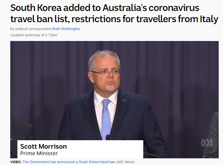 โ 3์ 5์ผ ์ค์บ ๋ชจ๋ฆฌ์จ ํธ์ฃผ ์ด๋ฆฌ๋ ๊ธฐ์ํ๊ฒฌ์์ "ํธ์ฃผ๊ฐ ํ๊ตญ์ฌํ ๊ธ์ง๋ น์์ ๋ฐํํ ์ด์ ๋ ํ๊ตญ ๋ฐฉ๋ฌธ์๊ฐ ์ดํ๋ฆฌ์ ๋ฐฉ๋ฌธ์๋ณด๋ค ์ฝ 5๋ฐฐ ๊ฐ๋ ๋ง๊ธฐ ๋๋ฌธ"์ด๋ผ๊ณ ์ค๋ช ํ์ต๋๋ค.